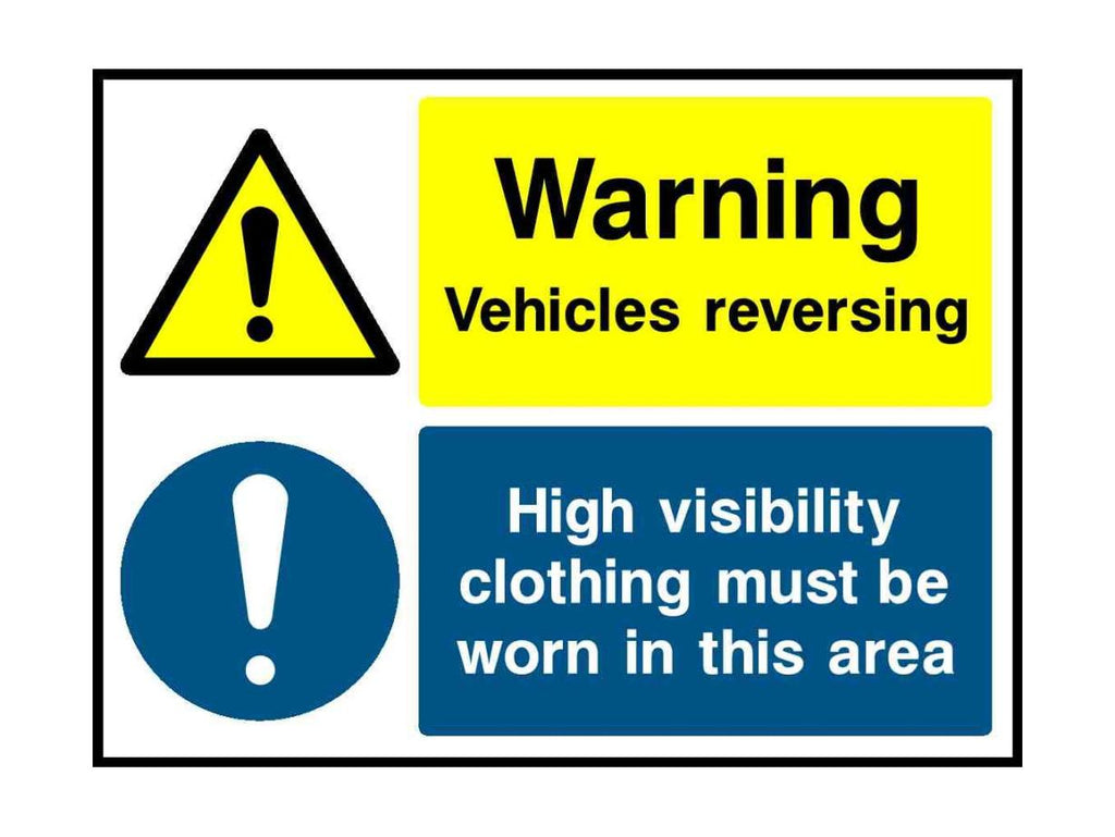 Warning Vehicles reversing High visibility clothing must be worn in this area Warning Sticker