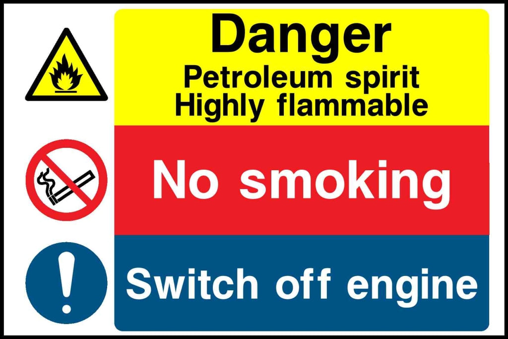 Danger Petroleum spirit Highly flammable No smoking