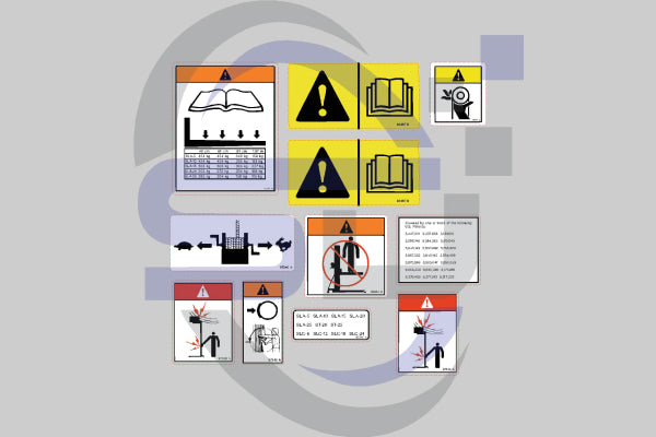 This kit is based on a standard spec machine and only contains the safety decals. This kit does not contain any cosmetic or control panel decals. Please note, before ordering this safety decal kit, it is recommended that you check this sticker kit is the correct one for your machine. Please refer to a parts manual or the table below if you are unsure. We print all our safety decals and signage onto the highest quality UV protected, durable vinyl, to ensure that all decals adhere to your machines and are able to survive harsh environments.