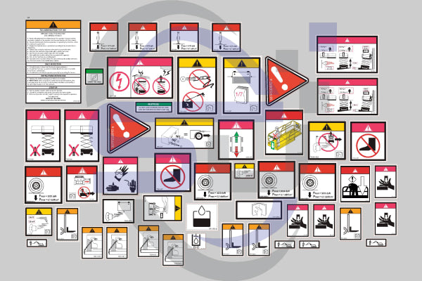 This kit is based on a standard spec machine and only contains the safety decals. This kit does not contain any cosmetic or control panel decals. Please note, before ordering this safety decal kit, it is recommended that you check this sticker kit is the correct one for your machine. Please refer to a parts manual or the table below if you are unsure. We print all our safety decals and signage onto the highest quality UV protected, durable vinyl, to ensure that all decals adhere to your machines and are able to survive harsh environments.