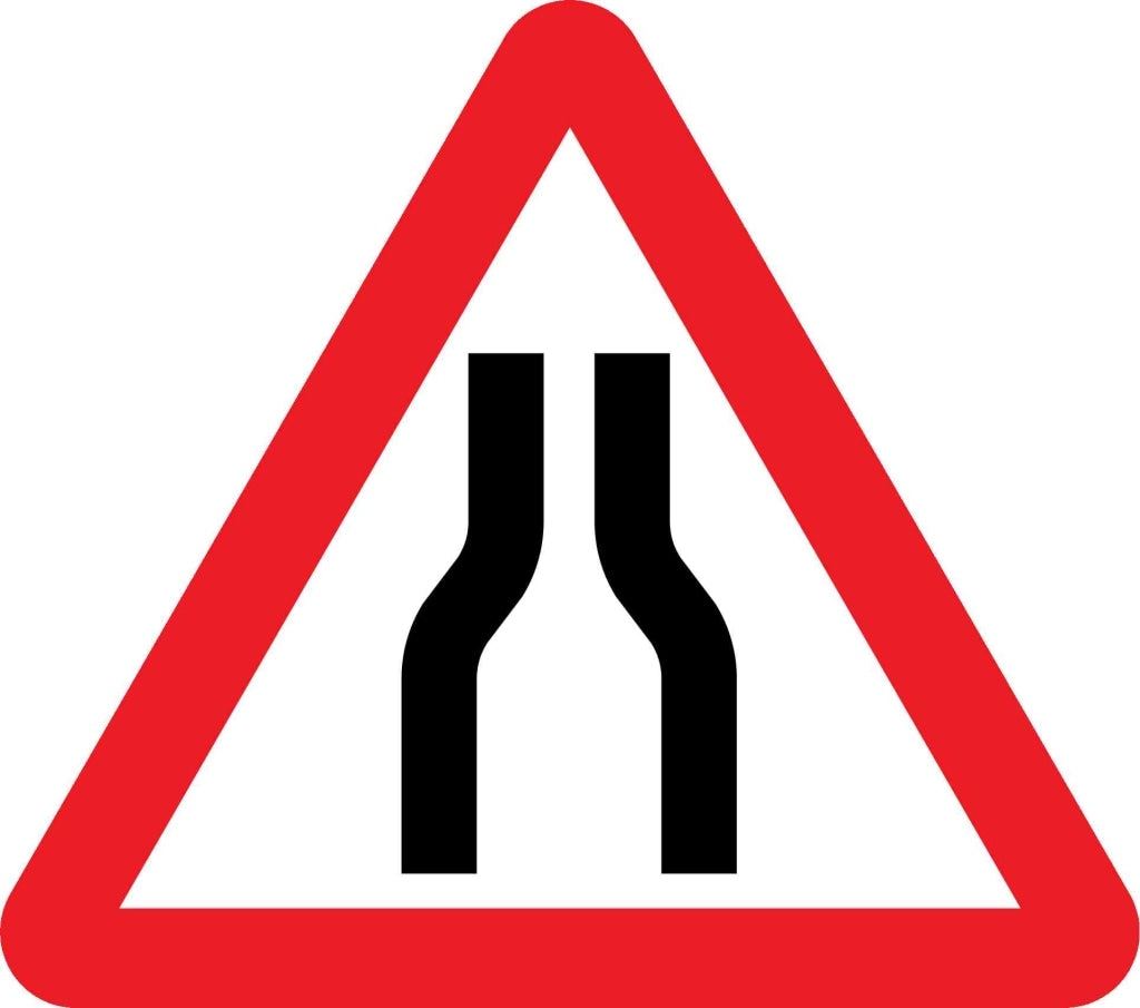 Road narrows on both sides